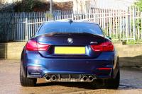 Welcome to the sale of this 2015 BMW M4 BiTurbo DCT with 2 former keepers . Finished in Individual Tanzanite Blue, this car boasts a full and up to date BMW Main Dealer Service History compromising 4 services. The running in service was completed at 1153. 2nd service was at 8960. 3rd service was at 10913 and the most recent was within the last 1000 miles. The car has 4 brand new Michelin Pilot Sport tyres. Brakes are all up to date and in good order. The car is supplied with MOT until August 2020. The car benefits from having a remote control switchable exhaust, carbon fibre performance kit and wheel spacers front & rear. The car is also in the process of having a full detail by an AutoFinesse accredited detailer - Royal Details. This list of extras is as impressive as its history. Full List of upgrades include; Head up Display, Professional Navigation, Harman Kardon Audio with DAB, M Sport Brakes, Adaptive Suspension, Front and Rear Parking Sensors, Electric Heated Front Seats with Memory function and more.... Que Automotive Car sales with genuine car enthusiasts. Located in Colchester, Essex we are easy to reach by road, rail and air. We offer a range of different finance packages including PCP and HP and through our network of Finance Brokers were able to source the best possible finance deal available to you. All our vehicles come with a 3 Month Warranty as standard and the option to extend is available. Viewings are by appointment only. Please contact us prior to traveling so we can ensure the vehicle available and onsite.