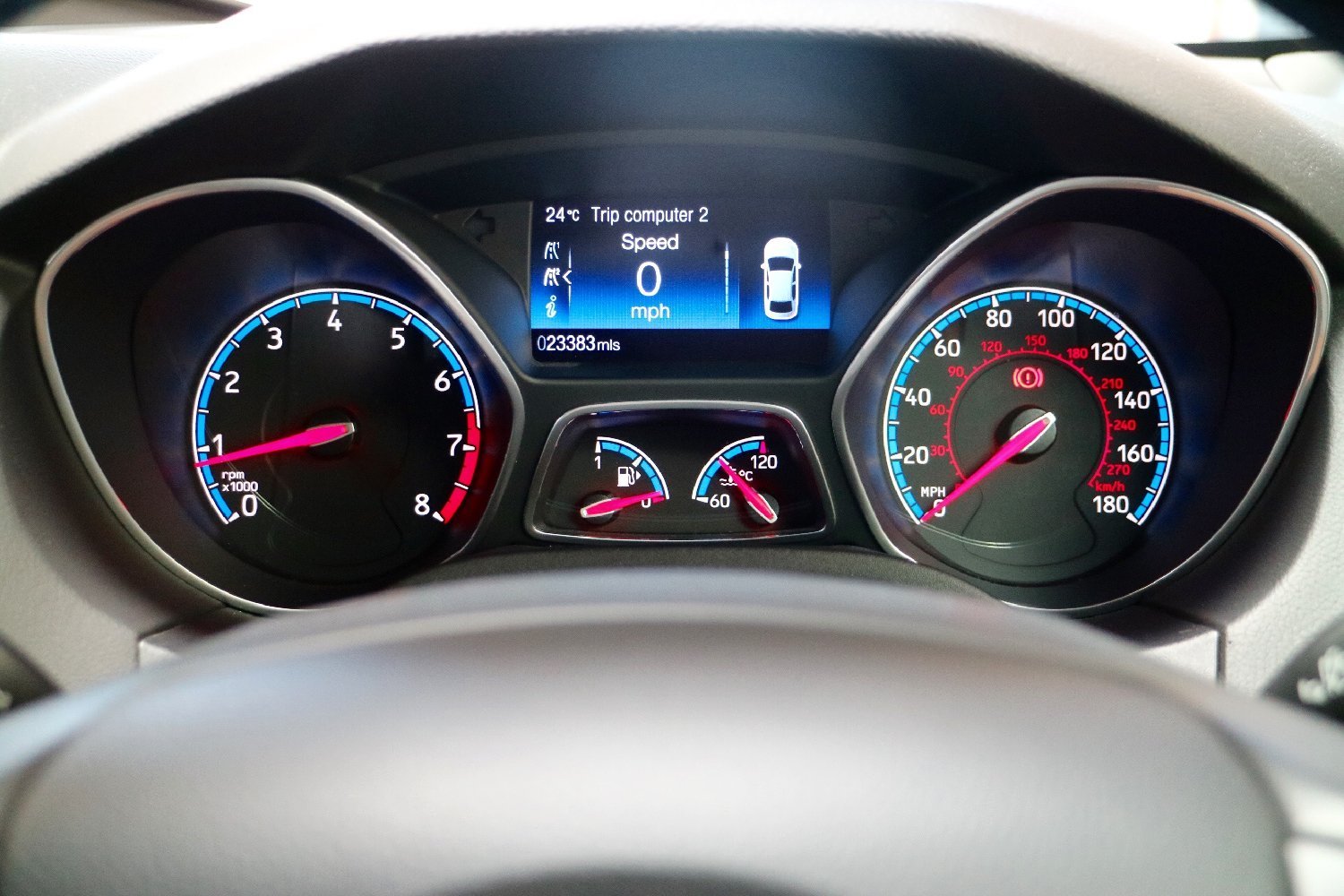 The car has the following spec and upgrades: Luxury Pack, 19" satin black forged alloys, Ford Sync 2 Navigation system, Recaro shell sports seats, Keyless entry, Door edge protectors, Blue brembo brake calipers, Rear camera, rear sensors, Upgraded Sony system with 10 speakers, Door edge protectors, Cruise contro, Privacy glass, Electric heated folding door mirrors, Puddle lights, 2 keys, Bi-Xenon headlights, Dual zone electronic air temperature control, Rain sensing wipers, 8inch touch screen, Quick clear front windscreen.